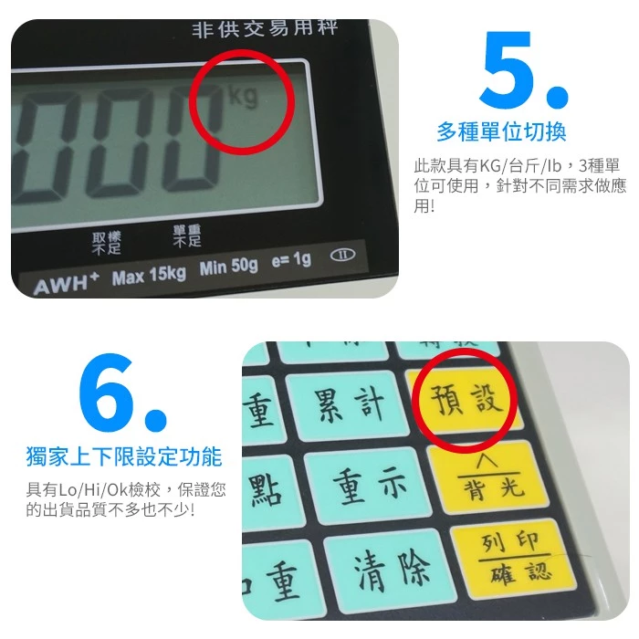 ◆具有公斤(kg)、台斤、磅(lb)單位選擇之功能