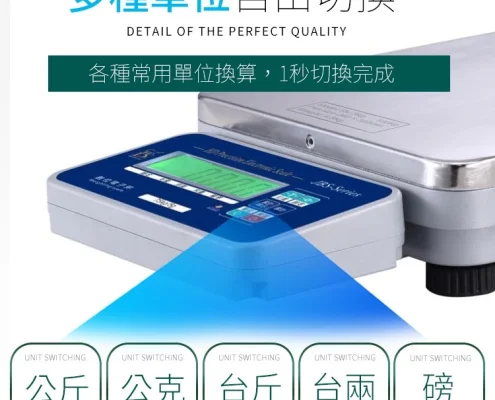 - 具有公斤kg、公克g、台斤、磅lb、盎司oz..多種計重單位。